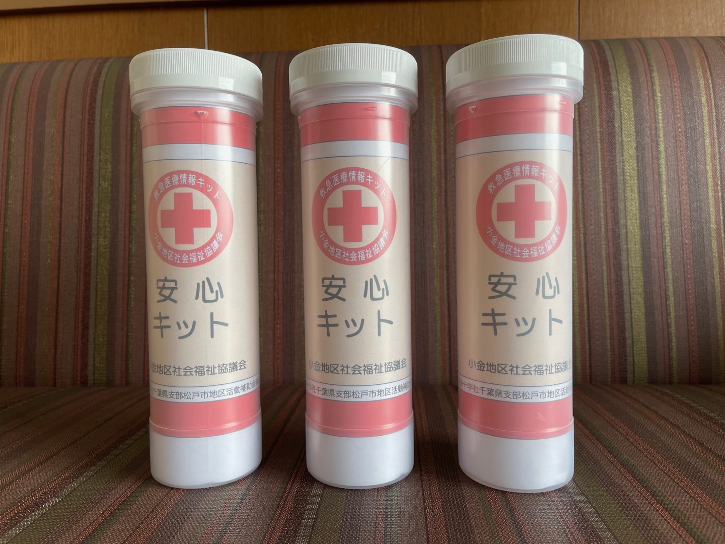 小金地区社会福祉協議会より「安心キット(救急医療情報キット)」無償配布の案内を頂き、回覧にて希望を募りましたところ、96名の方からのご要望があり、10月初旬に配布致しました。