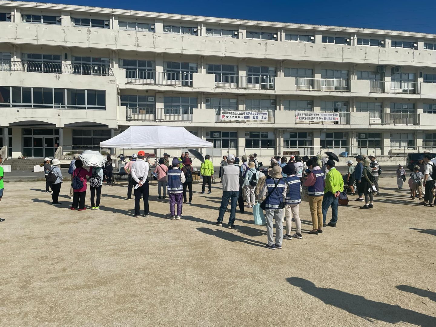 34町会が事前に参加者募集を行い、子供からご年配の方々まで約100名の方々が参加されました。当日は、9:00に小金北中学校に集合。天気は秋晴れで、ウォーキングにもってこいの爽やかな風の中、参加者全員でラジオ体操をし、ウォーミングアップした後、3つのグループに分かれて、順次ウォーキングに出発しました。