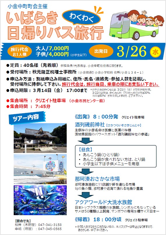 6年ぶりのバス旅行は「茨城」です。子供たちも参加しやすいように、春休みの3/26日(水)に開催します。