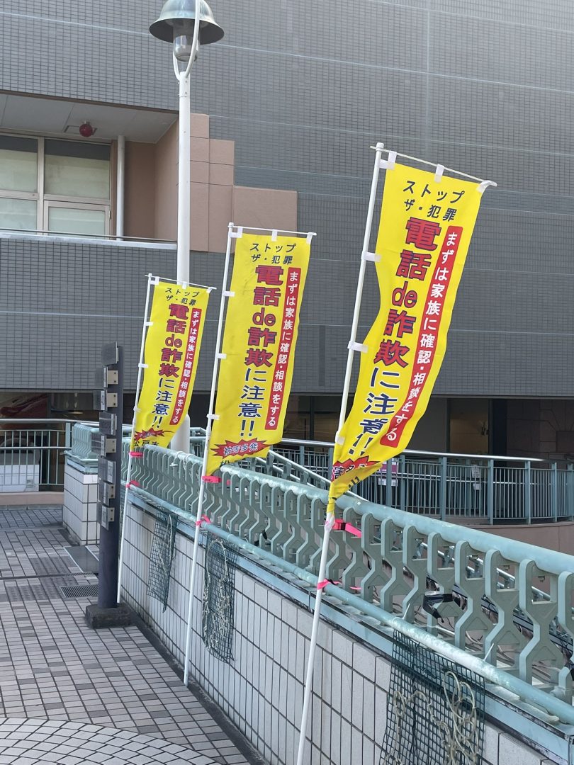 2ヶ月に1度、年金支給日に行われる「犯罪ゼロ・キャンペーン」。北小金駅のペディトリアンデッキに小金地区の町会、警察ボランティアの方々が集まって、駅周辺で振り込め詐欺やオレオレ詐欺への注意を呼びかけました。