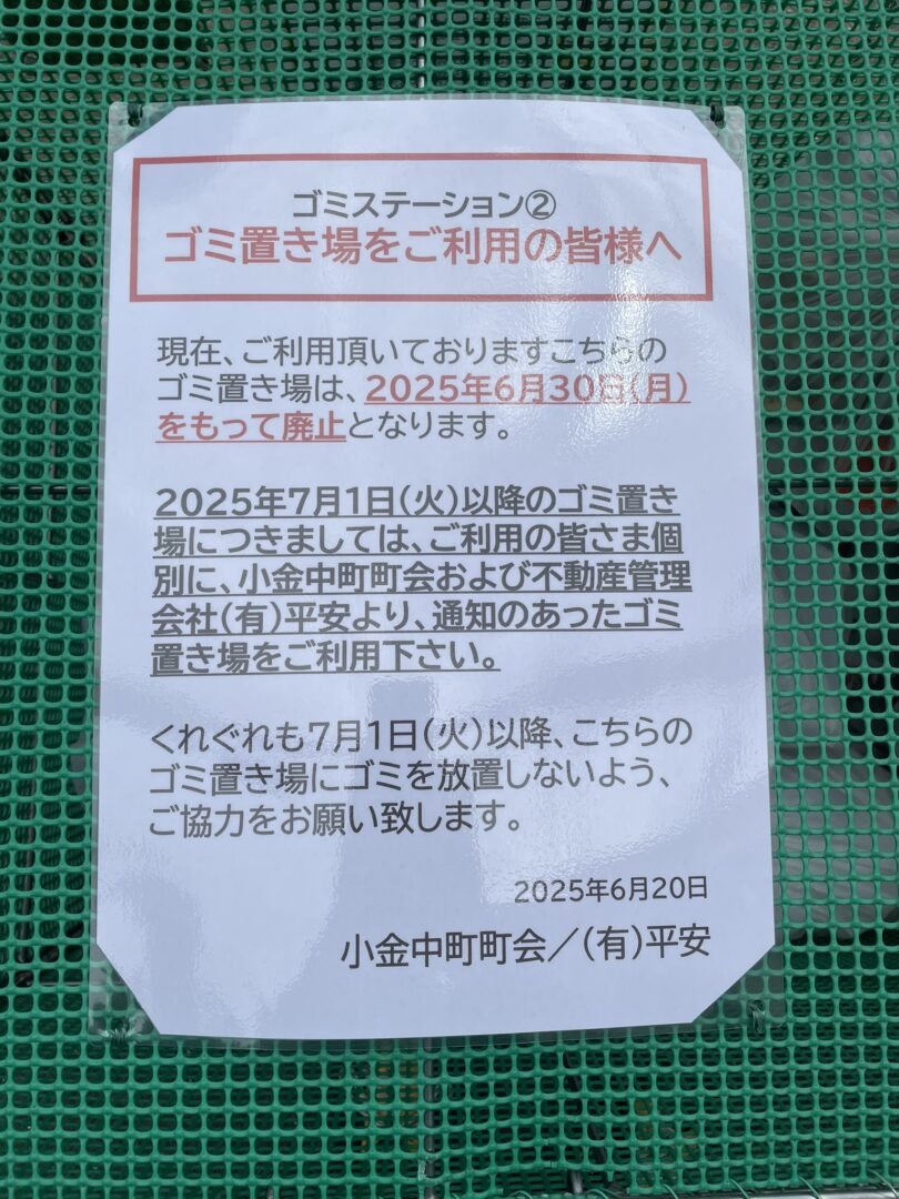 ゴミステーション②を利用されていた町会会員の皆様のご協力、賃貸集合住宅の管理会社、平安さまのご尽力により、実現しました。深く感謝申し上げます。