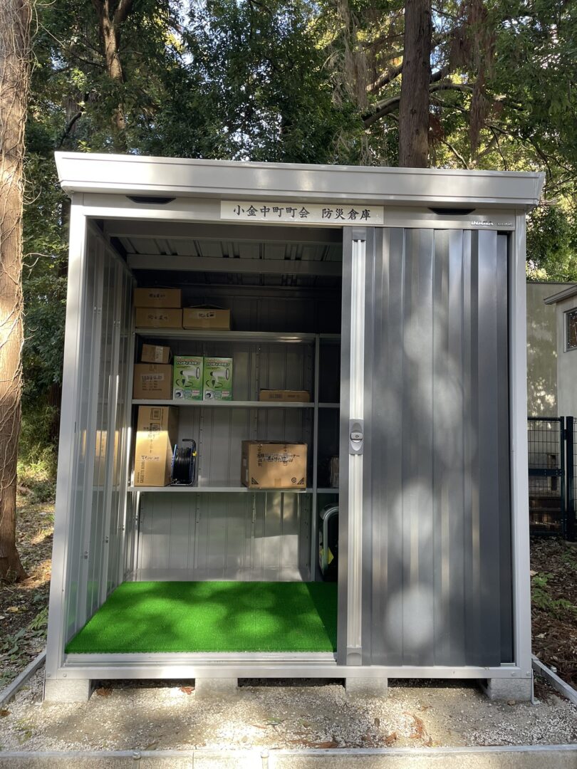 また、防災倉庫に「小金中町町会 防災倉庫」というネームプレートを設置。小金中町町会の防災倉庫が、ようやく持てたという実感が湧いてきました。