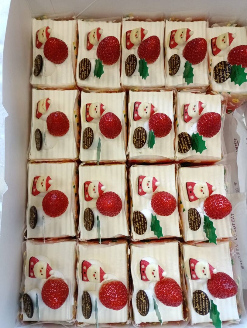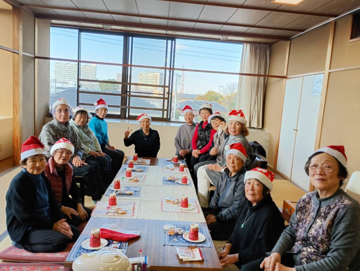 参加者全員が、サンタの帽子をかぶり、気分も一気にクリスマスモードに!晴れやかに!美味しいクリスマスケーキを食べながら、おしゃべりしながらの団らんのひと時。心もほっこり、あったかに!
