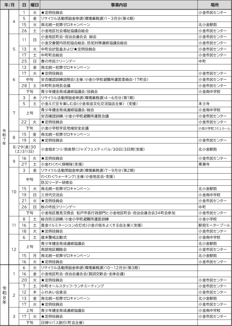 1⃣小金中町町会規約、第3条(目的)に沿った事業活動に注力 ~明るい住みよい生活の改善、福祉の増進および町内の発展~