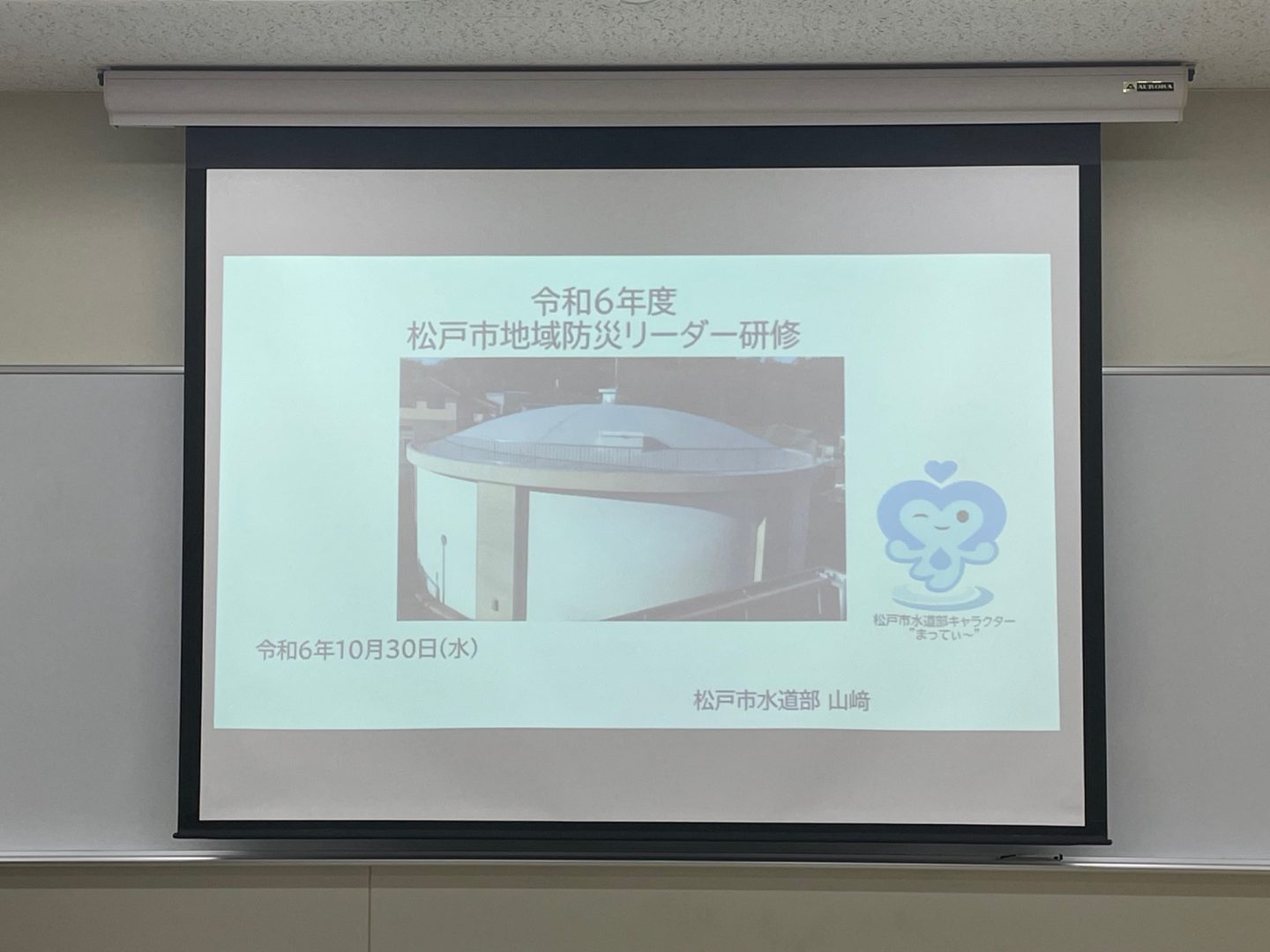 研修では、消防職員による防火・防災に関する講義と松戸市水道部職員による松戸市の水道事業や能登半島地震における松戸市職員の派遣活動等についての講義が行われ、最後に小金浄水場を見学しました。