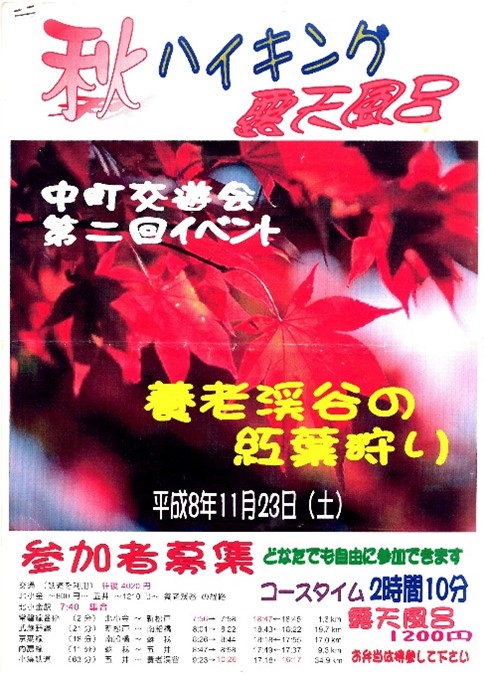 第2回イベントは同年11月23日に“養老渓谷めぐりのハイキング”を企画しましたが、参加者が1名と寂しい結果になりました。